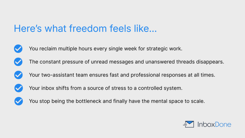 Others credit their InboxDone assistants with preventing missed opportunities, reducing burnout, or enabling business growth without additional hires.